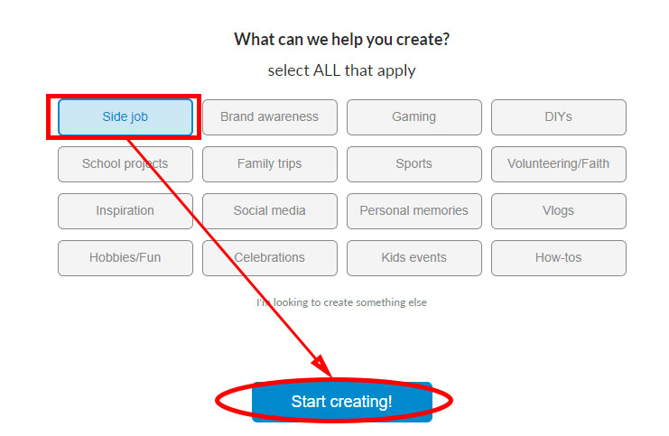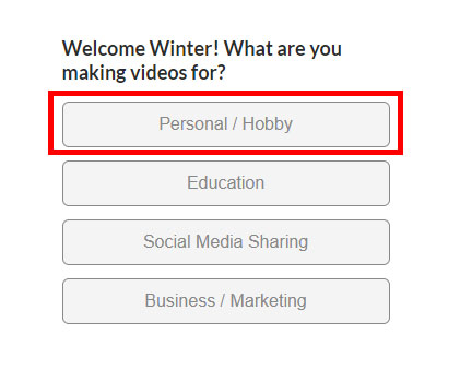 Sau khi đăng nhập thành công, các bạn nhấn chọn dạng video muốn tạo. Thường sẽ là Personal / Hobby (video dạng cá nhân).