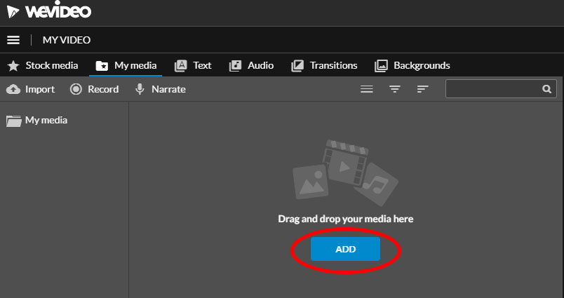 Màn hình chỉnh sửa video hiện ra, các bạn nhấn nút ADD để thêm video cần chỉnh sửa.