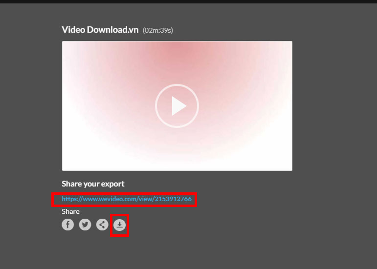 Sau khi video xử lý xong, các bạn có thể chia sẻ video bằng đường link xuất hiện phía dưới hoặc tải video về máy bằng nút tải xuống.