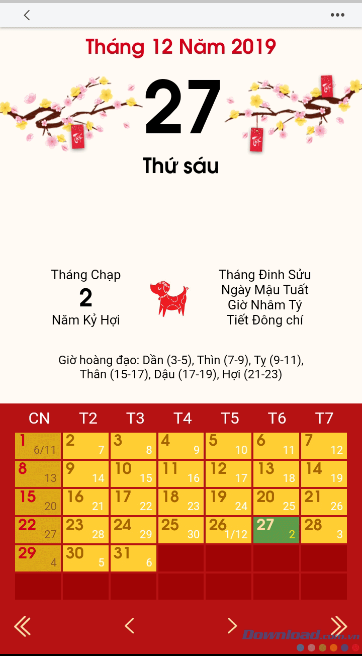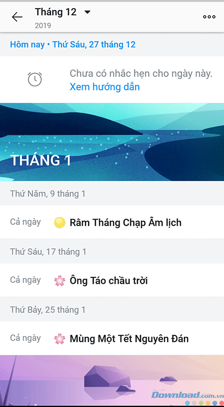 Trong màn hình hiện ra, chúng ta có thể xem các ngày lễ, tết và các ngày sự kiện lớn. Lướt lên hoặc lướt xuống để xem thêm các ngày khác.