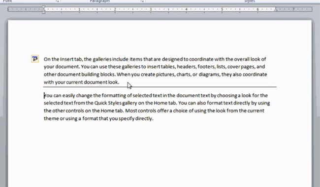 Trên trình soạn thảo Microsoft Word, nếu bạn gõ liên tiếp 3 dấu gạch ngang liên tiếp trên cùng một dòng và nhấn phím Enter, thì ngay lập tức một đường kẻ ngang sẽ chèn vào thay thế 3 dấu gạch ngang đó.