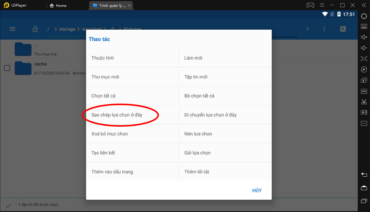 Chọn tiếp nút Sao chép lựa chọn ở đây, file base.apk lúc nãy sẽ được copy vào thư mục này.