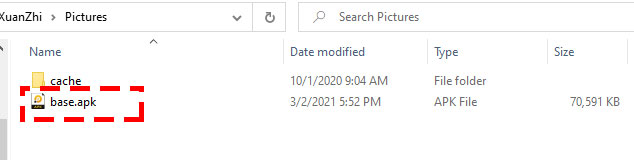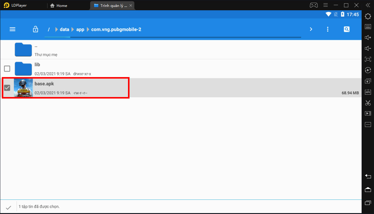 Sau khi vào thư mục, các bạn tích vào file có tên base.apk.