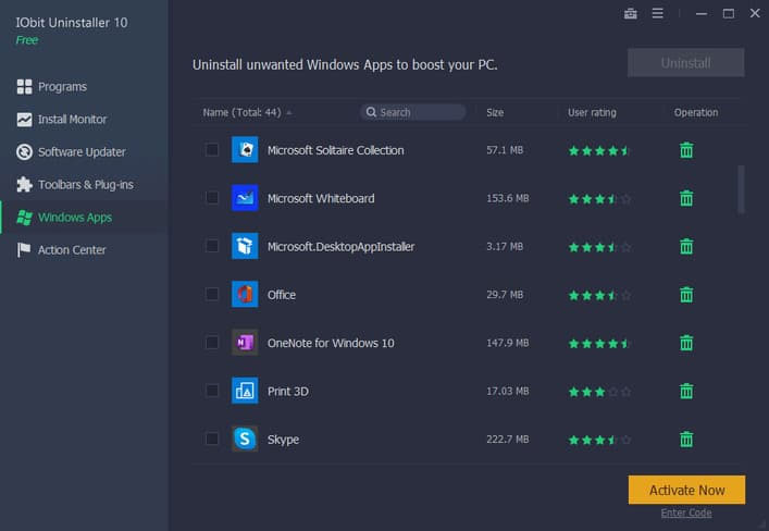 Sau một thời gian sử dụng, chiếc PC yêu quý của bạn sẽ ngập tràn trong hàng tá những phần mềm khác nhau. Không những vậy, còn có những phần mềm đi kèm tự động cài đặt mà người dùng vô tình hoặc không được thông báo cũng cài đặt vào máy tính của bạn. IObit Uninstaller 10 Pro được thiết kế để loại bỏ bất kỳ phần mềm không mong muốn nào và thậm chí cả phần mềm đi kèm chỉ bằng một cú nhấp chuột. Bên cạnh đó, cơ sở dữ liệu được mở rộng có thể giúp người dùng loại bỏ gấp 5 lần phần mềm cứng đầu và 30% phần mềm còn sót lại mà chỉ mất một nửa thời gian so với trước đây.