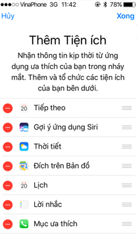 Chỉ cần cuộn xuống cuối trang ở Locksreen và chạm vào Sửa và tiến hành theo ý muốn. Widget mới giờ đây được bổ sung và đổi tên giao diện điều chỉnh thành "Thêm tiện ích". Tại đây, các bạn có thể sắp xếp, thay đổi vị trí các widget sao cho phù hợp với mình nhất, hay bổ sung widget muốn dùng và xóa bỏ các tính năng không bao giờ dùng tới trong danh sách này.