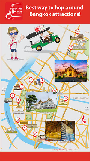 Xe tuk tuk chắc chắn là đặc sản di chuyển riêng của Thái Lan rồi, nếu bạn chưa từng ngồi trên chiếc xe này để đi đâu đó trong Bangkok thì nên thử nghiệm ngay bây giờ, nó sẽ mang đến cho bạn cảm giác không thể “phê” hơn. Những chiếc xe này di chuyển như một cơn gió và bạn có thể thấy chúng xuất hiện ở bất cứ đâu. Nếu chưa tìm được chiếc xe nào hãy sử dụng Tuk Tuk Hop để nhanh chóng đặt 1 chiếc xe và đi đến các khu chợ, ngôi đền trứ danh tại xứ sở chùa vàng nhé.
