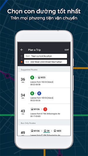 Moovit là ứng dụng giao thông số 1 trên thế giới, được hơn 300 triệu người dùng tin tưởng sử dụng trên hơn 2700 thành phố. Nếu bạn đang phân vân giữ các phương án di chuyển như taxi, tuk tuk, xe bus, tàu điện hay thuyền thì Moovit sẽ giúp bạn lựa chọn ra phương án tối ưu nhất cùng với hướng dẫn chi tiết cho từng chọn lựa đó.