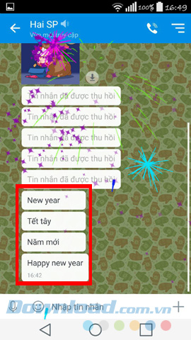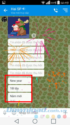 Để sử dụng tính năng này, chỉ cần các bạn đăng nhập vào tài khoản Zalo và vào phần chat với bạn bè bất kỳ, sau đó nhập và gửi một trong số những từ khóa trên để xem hiệu ứng mà chúng tạo ra.