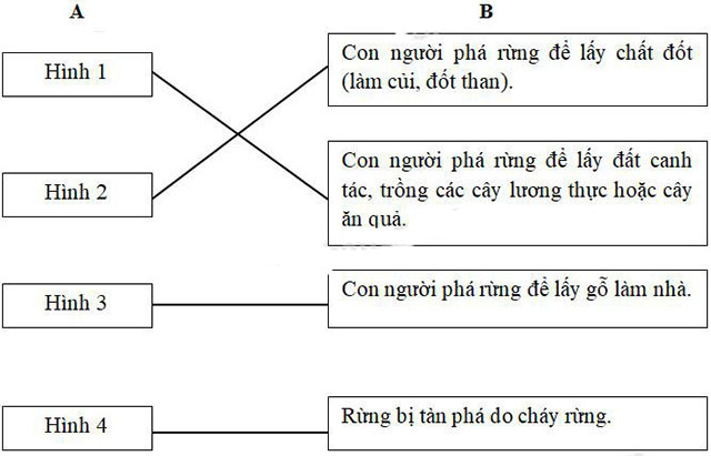 - Có nhiều lí do khiến rừng bị tàn phá: đốt rừng làm nương rẫy, chặt cây lấy gỗ, đóng đồ dùng gia đình, để lấy đất làm nhà, làm đường,…
