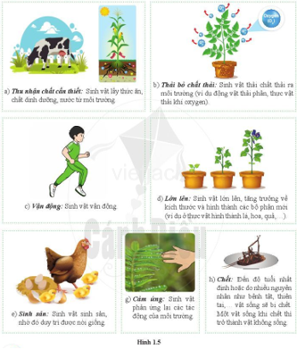 ❓ Quan sát hình 1.5 và cho biết những đặc điểm giúp em nhận biết vật sống