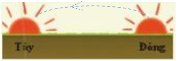 - Khi Trái Đất quay, góc nghiêng giữa Mặt Trời và Trái Đất dần lớn lên. Đồng thời , nó tự quay quanh trục theo hướng từ Tây sang Đông, do đó ta có cảm giác Mặt Trời mọc từ thấp lên cao, mọc ở đằng Đông và lặn ở đằng Tây.