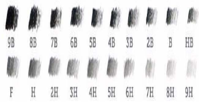 Vậy bút chì 9B là đậm nhất thuần màu đen và mềm nhất, 7B thì nhạt hơn, 5B thì nhạt hơn nữa, còn 9H thì cứng nhất bởi vậy nên nét bút cũng nhạt nhất trong thang phân loại.