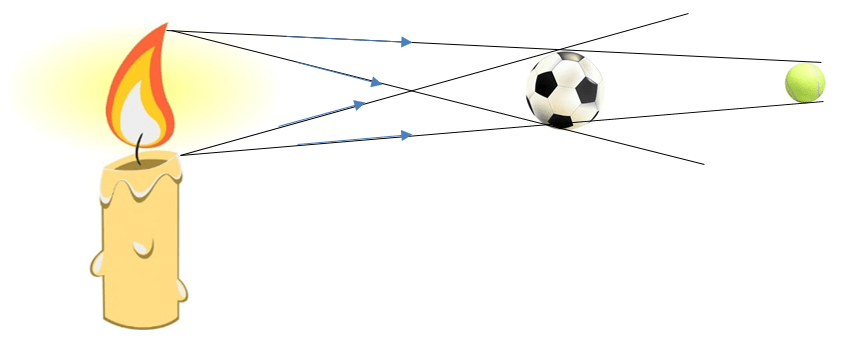 b. Sử dụng 1 ngọn nến và các quả bóng có kích thước phù hợp thay thế Mặt Trời, Trái Đất, Mặt Trăng để kiểm tra kết quả thu được như hình vẽ ở câu 1.