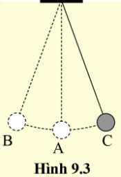 Một viên bi được treo ở đầu sợi dây nhẹ, dao động như hình 9.3. Vị trí cân bằng của viên bi là vị trí nào?
