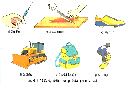 Việc tăng, giảm áp suất trong các tình huống ở Hình 16.3 có những lợi ích gì? Làm thế nào để tăng hoặc giảm áp suất trong mỗi tình huống?