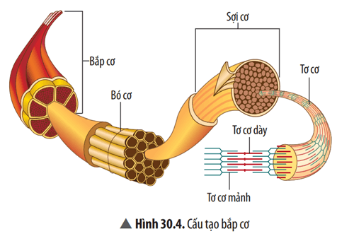 Sơ đồ cấu trúc của bắp cơ theo thứ tự lớn dần: Tơ cơ → Sợi cơ → Bó cơ → Bắp cơ.