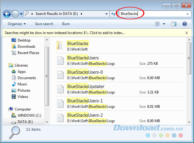 Như đã nói, các bạn không nên quá vội vàng sử dụng các phần mềm khôi phục dữ liệu, lượn một vòng qua các ổ đĩa, sử dụng tính năng tìm kiếm nhanh để nhập từ khóa vào rồi Enter.