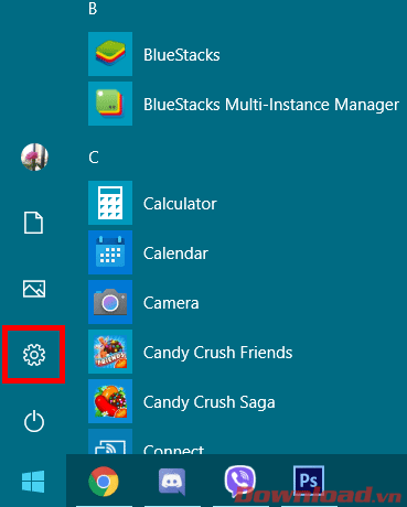 Để làm điều này, đầu tiên các bạn vào Start và chọn Settings.