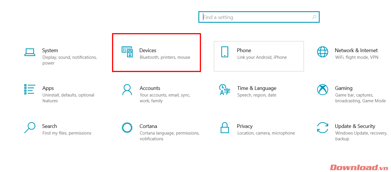 Trong cửa sổ Setting, ta chọn tiếp mục Devices.