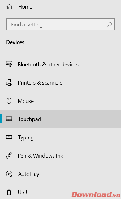 Ở Menu bên tay trái, bạn nhấn vào nút Touchpad.