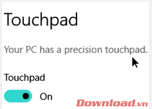 Trong phần này, các bạn hãy để ý thanh Touchpad đã ở vị trí On (bật) chưa. Nếu chưa thì các bạn hãy gạt nó sang nút On nhé.