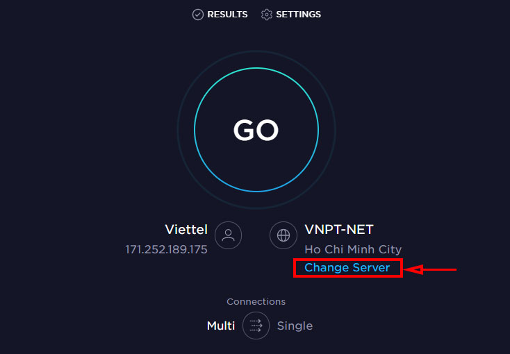 Nếu muốn kiểm tra bằng một server (máy chủ) của nhà mạng khác, hãy nhấn nút Change Server.
