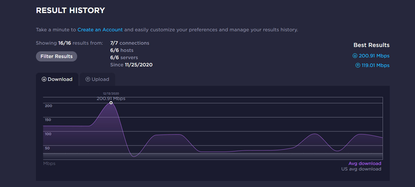Thống kê về tốc độ mạng của các lần kiểm tra gần đây sẽ hiện ra, giúp người dùng dễ dàng theo dõi.