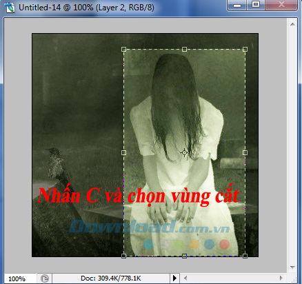 Bước 1: Các bạn mở bức ảnh ma cần ghép lên, sau đó chọn công cụ cắt (nhấn phím tắt C).