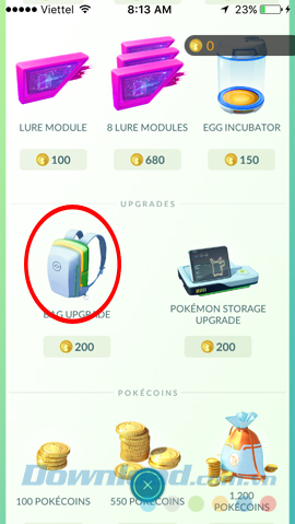 Tuy nhiên, cách này yêu cầu người chơi phải sử dụng tiền thật để nạp PokeCoins, sau đó vào nâng cấp Items trong mục Bag Upgrade. Một lưu ý nữa, người chơi Pokemon Go cũng chỉ được nâng cấp Items tối đa là 13 lần.