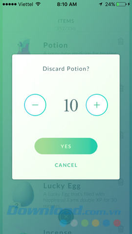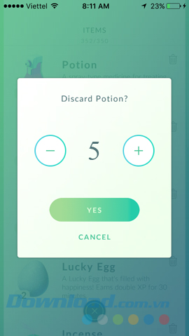 Cách cuối cùng, cũng là cách hoang phí nhất, nhưng nó là cách nhanh nhất để chúng ta giải phóng không gian lưu trữ theo số lượng lớn. Nếu bạn có nhiều Razz Berry hay Potion (những vật phẩm này nhận được rất nhiều trong Pokestop) và không thực sự có nhu cầu sử dụng tới, hãy "thanh lý" chúng.