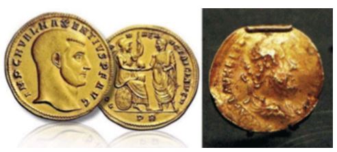 (*) Tư liệu và hình ảnh số 1: Đồng tiền vàng La Mã năm 308 và đồng vàng La Mã phát hiện tại di chỉ Óc Eo cho thấy hoạt động thương mại rộng lớn của vương quốc Phù Nam.