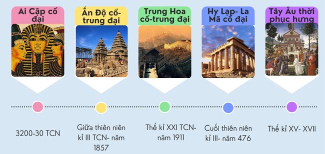Một số nền văn minh thế giới thời kì cổ-trung đại trên trục thời gian:
