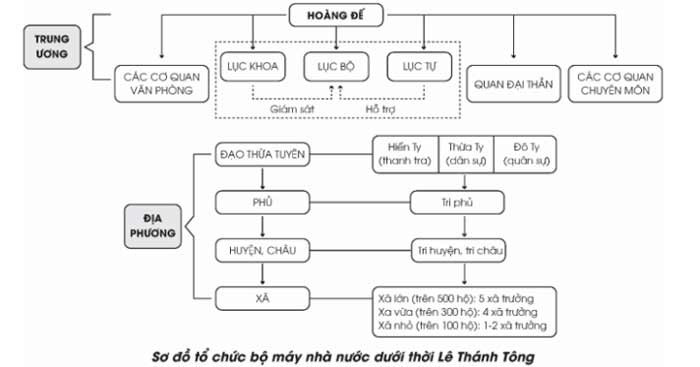 Vẽ sơ đồ tổ chức bộ máy chính quyền trung ương thời Lê sơ từ sau cải cách của Lê Thánh Tông.