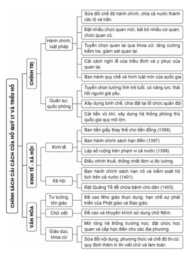 Vẽ sơ đồ tư duy thể hiện các chính sách cải cách của Hồ Quý Ly và triều Hồ.