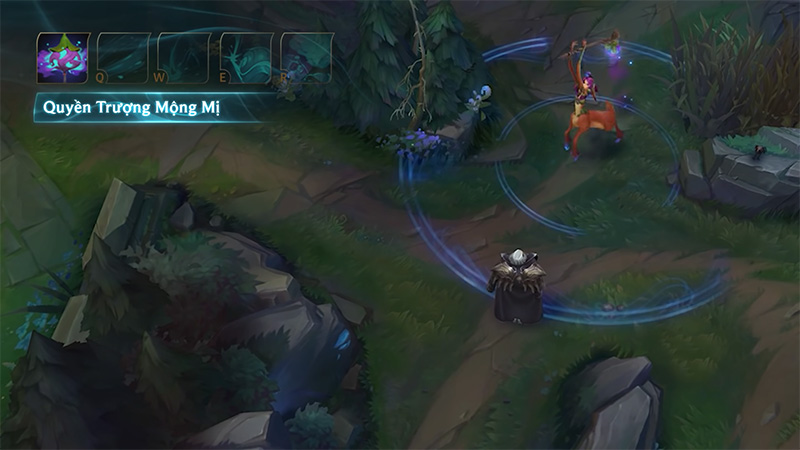 Khúc ru rừng thẳm sẽ làm chậm kẻ địch xung quanh trước khi khiến chúng rơi vào giấc ngủ trong một khoảng thời gian. Khi chúng được đánh thức vì nhận sát thương, chúng sẽ nhận thêm sát thương phép.