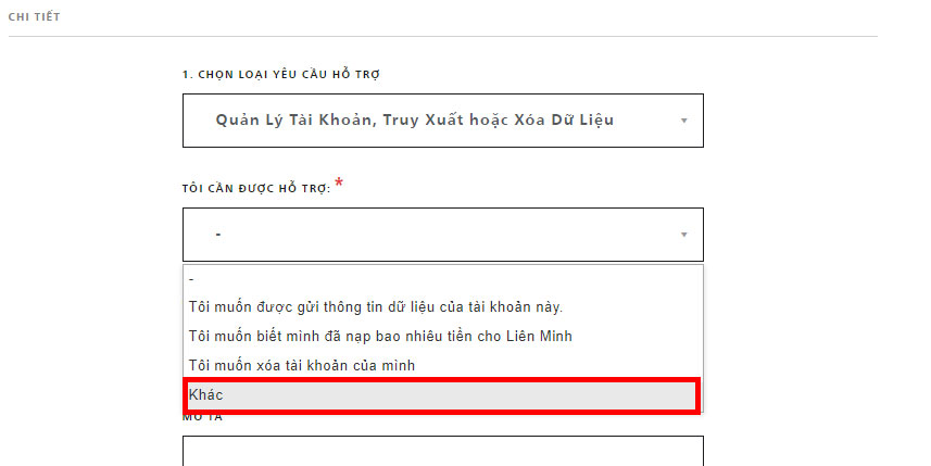 Tiếp theo, các bạn hãy chọn phần Khác ở ô Tôi cần được hỗ trợ.