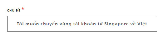 Kéo xuống dưới, phần Chủ đề các bạn điền đầy đủ như sau: Tôi muốn chuyển vùng tài khoản từ Singapore về Việt Nam. Nếu bạn có tài khoản ở máy chủ khác thì hãy điền tên quốc gia đó vào thay cho Singapore.