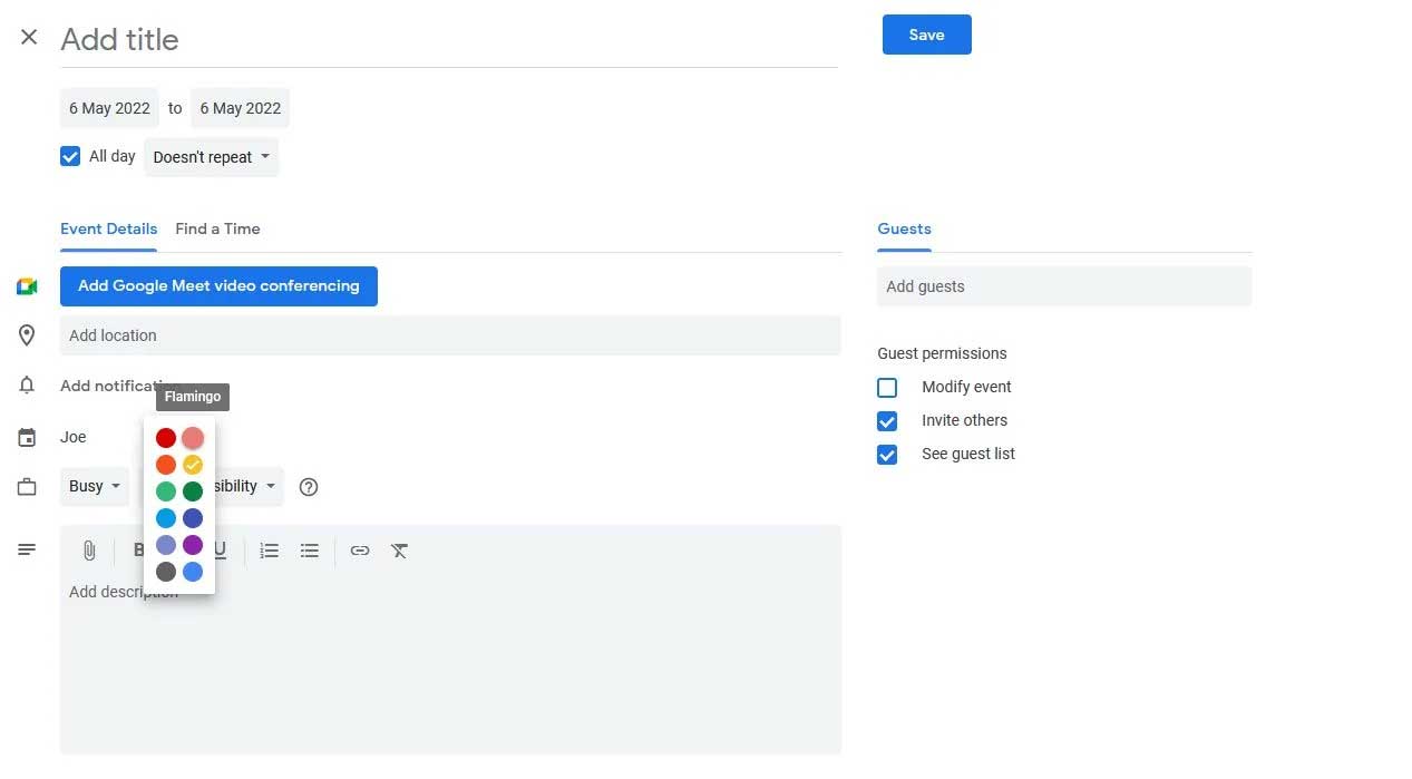 Viết quá nhiều thông tin chi tiết vào sự kiện được đánh dấu trên lịch cũng là lỗi mà nhiều người thường mắc phải khi sử dụng Google Calendar. Về cơ bản, bạn chỉ cần thêm một số thông tin sau: