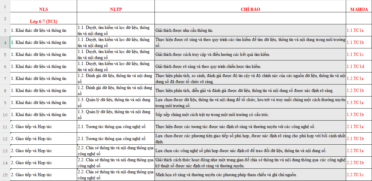 Mời các bạn tải file về để xem trọn bộ Mã hóa Năng lực số lớp 6, 7, 8, 9