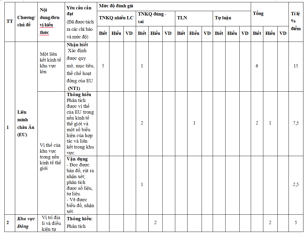 Ma trận đề kiểm tra học kì 1 Địa lí 11 năm 2025 gồm 2 sách Cánh diều, Kết nối tri thức được trình bày dưới dạng file Word rất thuận tiện để quý thầy cô tải về chỉnh sửa theo ý của riêng mình. Ma trận bản đặc tả đề kiểm tra cuối kì 1 Địa lí lớp 11 giúp giáo viên xác định rõ chuẩn kiến thức, kĩ năng, năng lực cần đánh giá, bảo đảm đề kiểm tra bám sát mục tiêu chương trình GDPT 2018 và phân bổ hợp lý giữa các mức độ nhận thức đúng hướng, khoa học, công bằng. Vậy dưới đây là nội dung ma trận đề kiểm tra cuối kì 1 Địa lí 11 năm 2025 mời các bạn tải tại đây. Ngoài ra các bạn xem thêm: bộ đề thi cuối học kì 1 Ngữ văn 11.