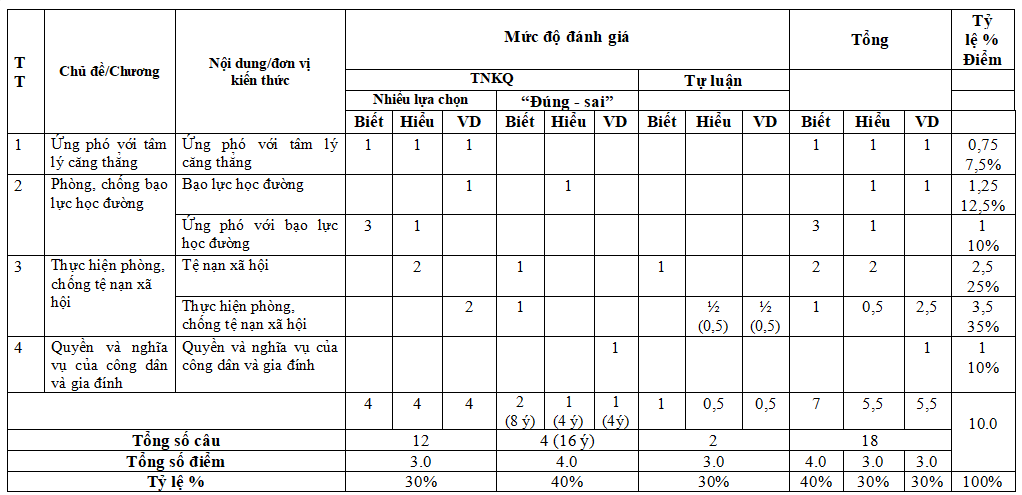Tìm hiểu thêm »Ma trận đề thi học kì 2 lớp 7 sách Cánh diều năm 2024 - 2025 bao gồm 7 môn: Công nghệ, GDCD, Lịch sử và Địa lí, Tin học, Âm nhạc, Giáo dục địa phương, Hoạt động trải nghiệm.