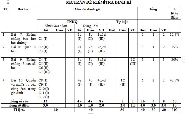 Tìm hiểu thêm »Ma trận đề kiểm tra cuối học kì 2 môn Giáo dục công dân 9 năm 2025 - 2026 là tài liệu vô cùng hữu ích được biên soạn theo sách Kết nối tri thức với cấu trúc Công văn 7991 gồm ma trận và bản đặc tả chi tiết.