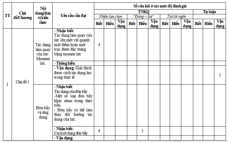 >> Nội dung ma trận và bản đặc tả có đầy đủ trong file tải về