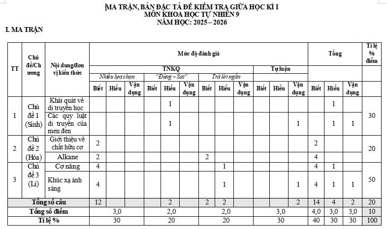 >> Nội dung ma trận và bản đặc tả có đầy đủ trong file tải về