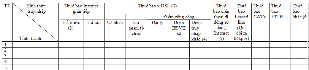 BÁO CÁO THỐNG KÊ VỀ MẠNG LƯỚI VÀ DỊCH VỤ INTERNET