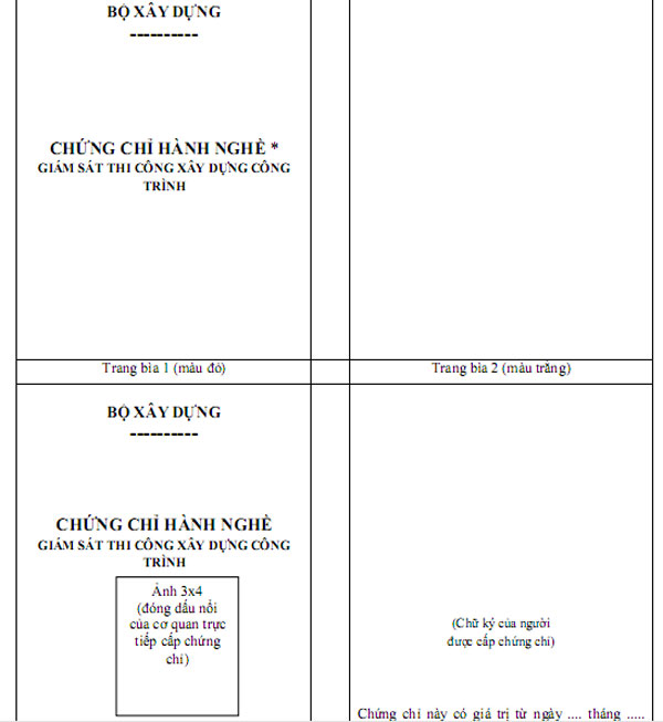 Mẫu chứng chỉ hành nghề giám sát thi công xây dựng công trình
