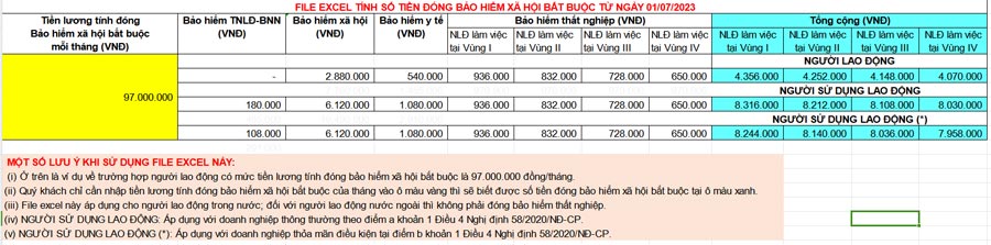 (i) Ở trên là ví dụ về trường hợp người lao động có mức tiền lương tính đóng bảo hiểm xã hội bắt buộc là 97.000.000 đồng/tháng.
