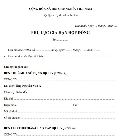 Mẫu gia hạn hợp đồng Phụ lục gia hạn hợp đồng