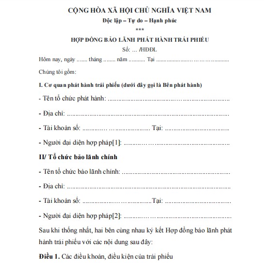 HỢP ĐỒNG BẢO LÃNH PHÁT HÀNH TRÁI PHIẾU