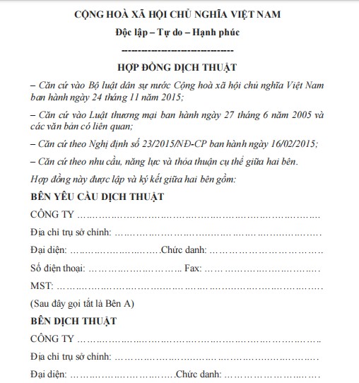 - Bên B hoàn tất việc dịch tài liệu và bên A thanh toán xong cho bên B.